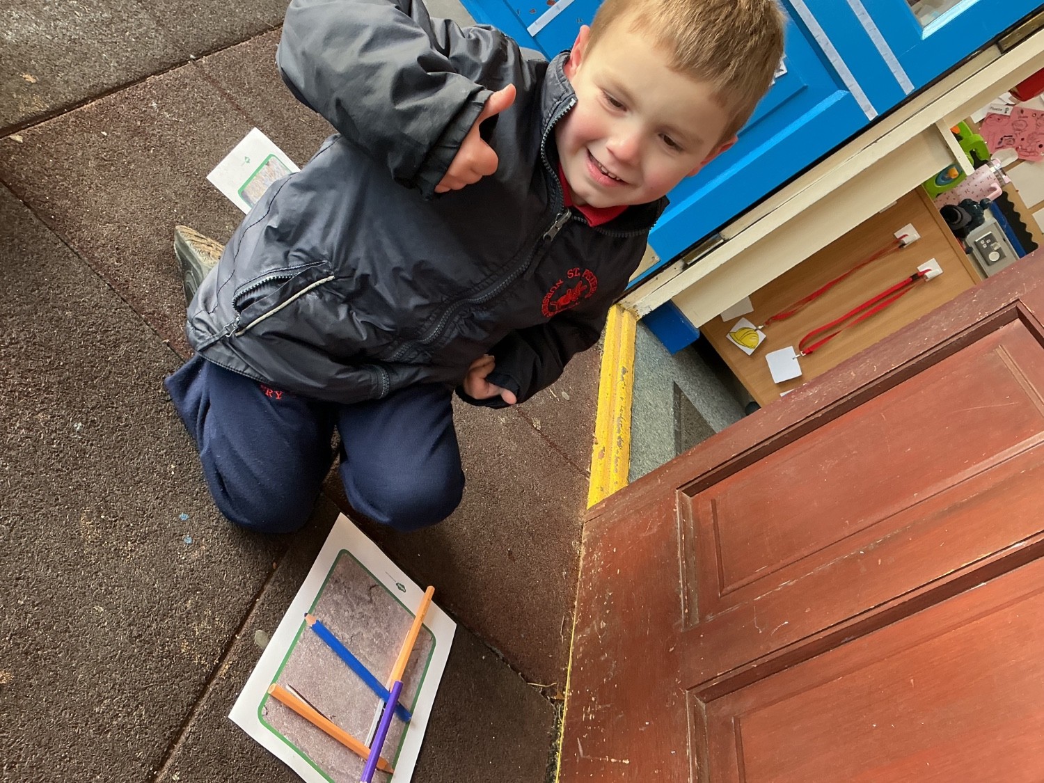Such a busy morning using a range of loose parts to make the letters of the alphabet.